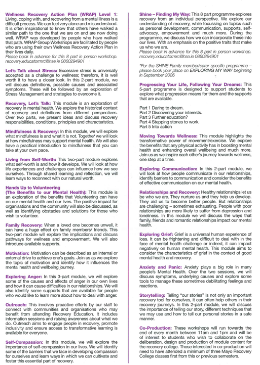 Mayo Recovery College: Spring/Summer Prospectus 2026